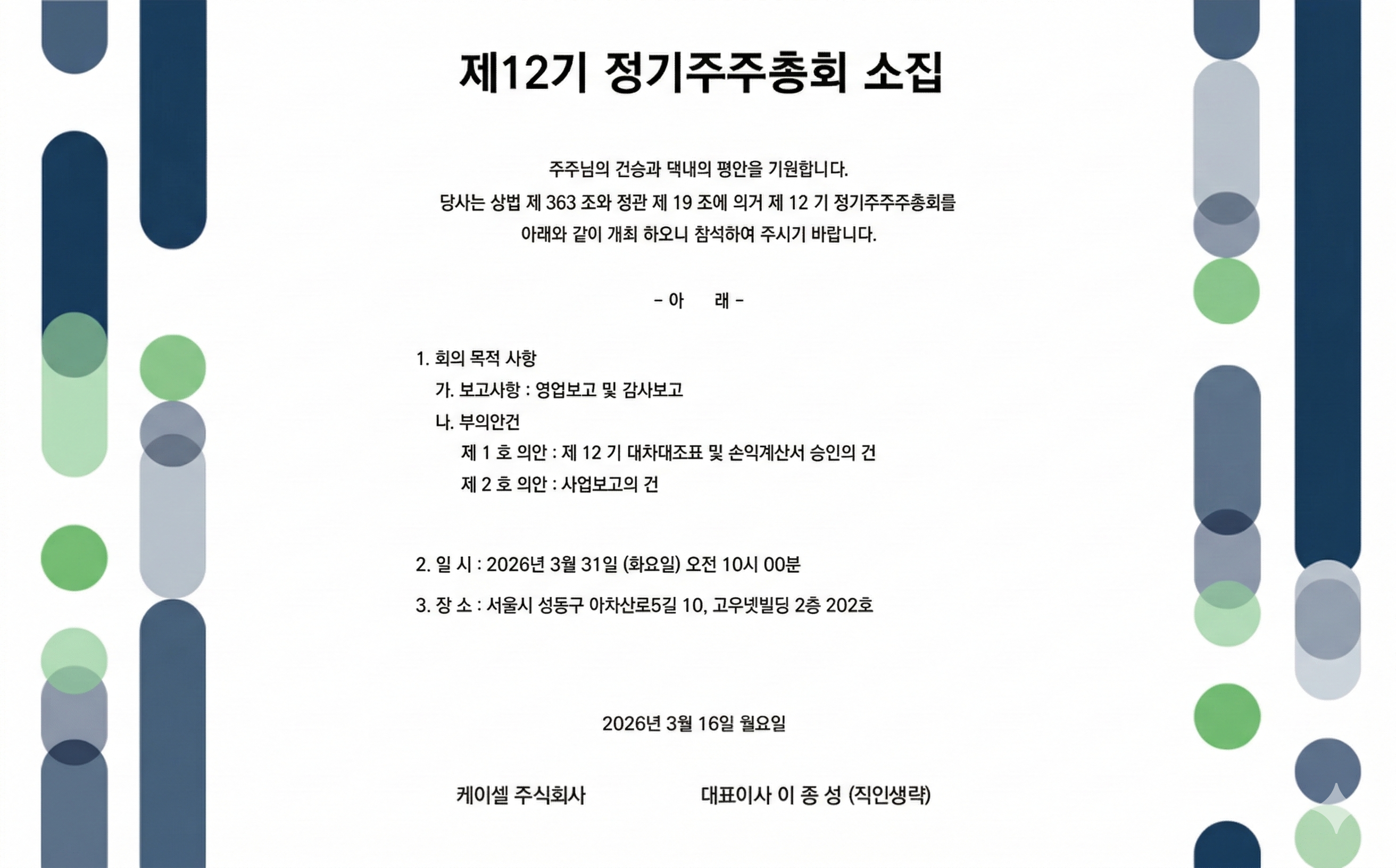 ※ 주주총회 장소는 본사 건물이 아니오니, 방문전 장소를 꼭 확인해 주세요.